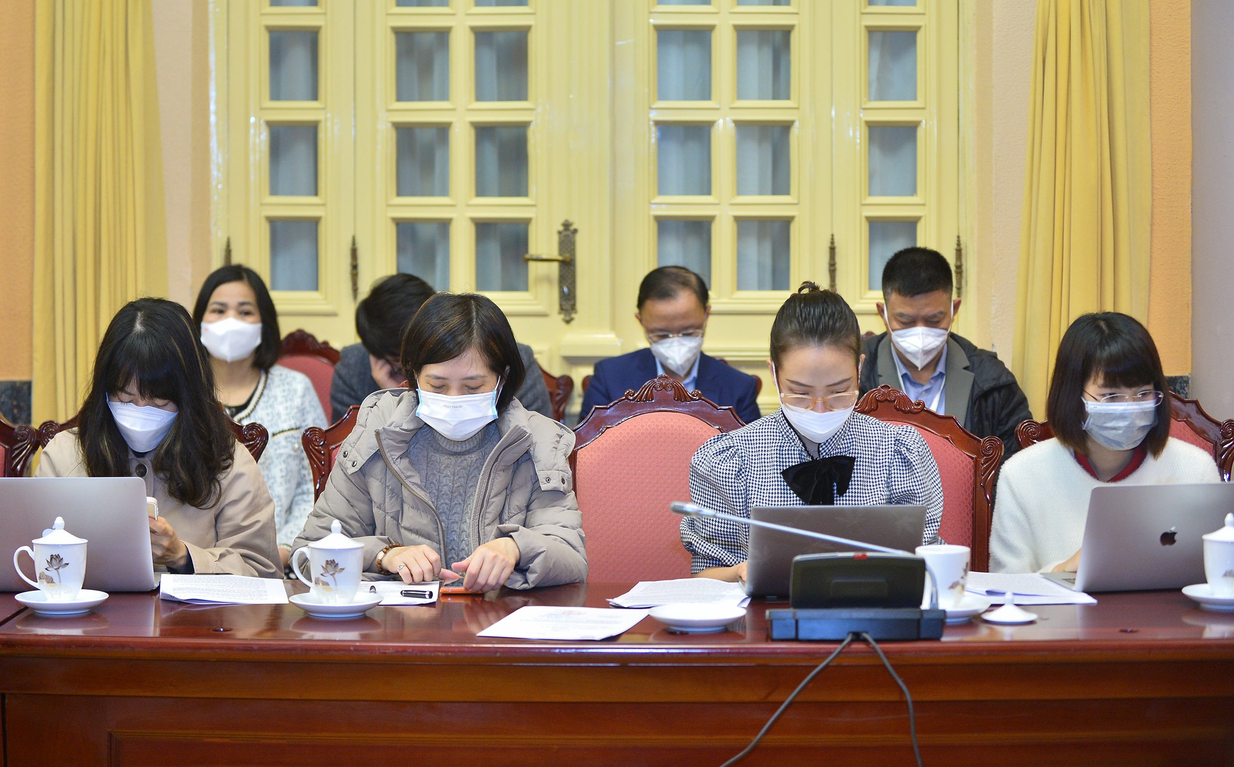 Các đại biểu, phóng viên, biên tập viên tham dự họp báo |