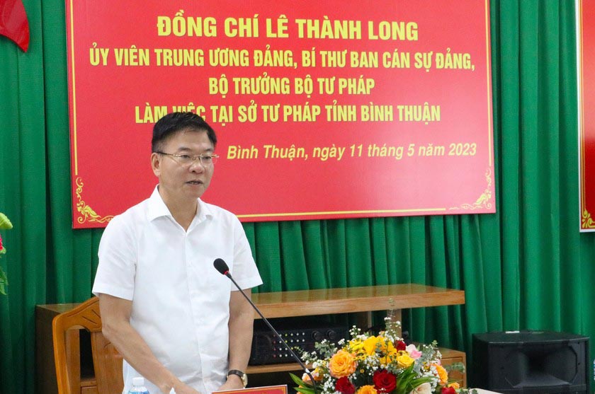 Kết thúc buổi làm việc, Bộ trưởng Bộ Tư pháp Lê Thành Long đã đánh giá cao công tác chuẩn bị nội dung, chương trình làm việc của Sở Tư pháp với đoàn công tác. “Qua thời gian theo dõi, trao đổi công việc, tôi rất yên tâm với công tác tư pháp, ngành tư pháp tỉnh Bình Thuận”, Bộ trưởng nhận xét. Theo Bộ trưởng, công tác chỉ đạo, điều hành của lãnh đạo Sở luôn ổn định, đổi mới. Điều này đã được Bộ ghi nhận và cảm ơn sự cố gắng của Sở trong thời gian qua.