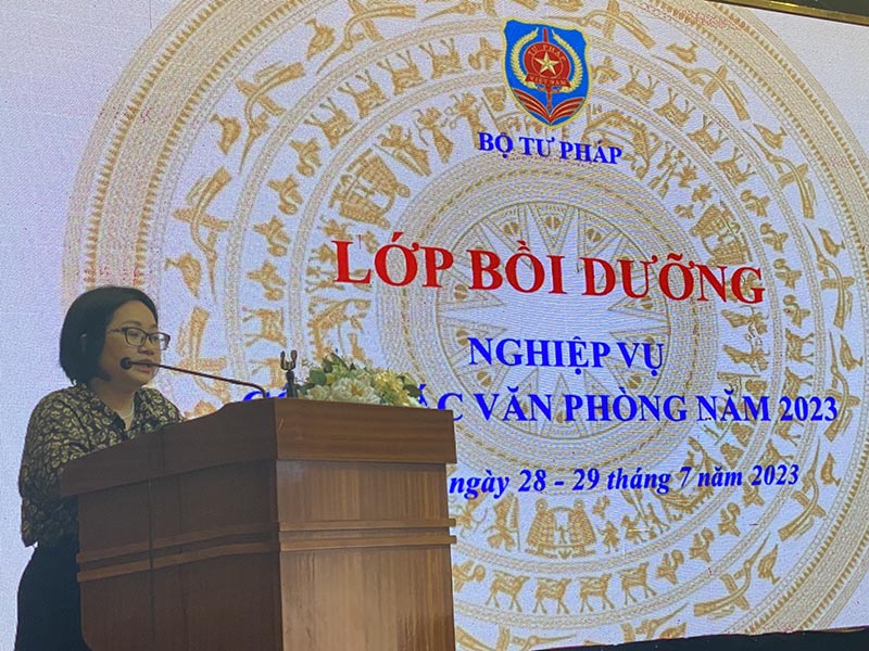 Tại Lớp bồi dưỡng, các học viên được tập huấn về một số nội dung cần lưu ý về bảo vệ bí mật nhà nước trong công tác văn phòng; tăng cường hiệu quả tiếp nhận, theo dõi, đôn đốc, trả lời phản ánh, kiến nghị và nâng cao hiệu quả công tác truyền thông về hoạt động của Bộ, ngành Tư pháp. Bên cạnh đó, các học viên cũng được nghe chia sẻ về những câu chuyện khó khăn và những kinh nghiệm thực tiễn trong công tác văn phòng để học hỏi, áp dụng cho đơn vị mình.
