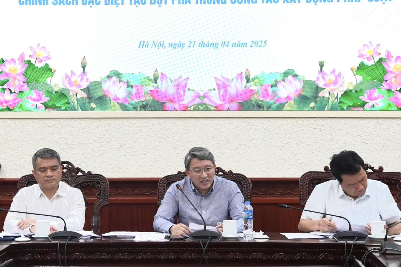 Trao đổi tại buổi làm việc, các đại biểu đánh giá cao sự cố gắng, nỗ lực của cơ quan chủ trì soạn thảo. Ngoài ra, các đại biểu đề nghị cơ quan chủ trì soạn thảo nghiên cứu một số nội dung sau: (i) dự thảo Nghị quyết cần chia ra 02 nhóm chính sách, cụ thể: nhóm 1 gồm các chính sách về nhân lực; nhóm 2 gồm các chính sách về hoạt động xây dựng pháp luật; (ii) cơ quan chủ trì soạn thảo cần rà soát thêm các chính sách pháp luật về cán bộ, công chức ở các tất cả quy định về biệt phái, bổ nhiệm, tuyển dụng, đào tạo, học tập,... nhằm bảo đảm tính đồng bộ của hệ thống pháp luật; (iii) cần nghiên cứu cơ chế khoán nhiệm vụ, đánh giá, sàng lọc... đối với nhóm cán bộ, công chức làm công tác xây dựng pháp luật; (iv) đối với hoạt động của Quỹ hỗ trợ nghiên cứu, xây dựng chính sách, pháp luật, cơ quan chủ trì soạn thảo cần nghiên cứu bổ sung căn cứ theo Quyết định số 178-QĐ/TW ngày 27/6/2024 của Bộ Chính trị về kiểm soát quyền, lực, phòng, chống tham nhũng, tiêu cực trong công tác xây dựng pháp luật; (v) về đề án phát triển sản phẩm, dịch vụ ứng dụng AI, công nghệ thông tin, chuyển đổi số phục vụ xây dựng pháp luật, phát triển các doanh nghiệp công nghệ số về xây dựng pháp luật, cơ quan chủ trì soạn thảo cần bám sát Nghị quyết số 193/2025/QH15 ngày 19/02/2025 của Quốc hội về thí điểm một số cơ chế, chính sách đặc biệt tạo đột phá phát triển khoa học, công nghệ, đổi mới sáng tạo và chuyển đổi số quốc gia (Nghị quyết số 193/2025/QH15) và Nghị định số 88/2025/NĐ-CP của Chính phủ quy định chi tiết và hướng dẫn một số điều của Nghị quyết số 193/2025/QH15...