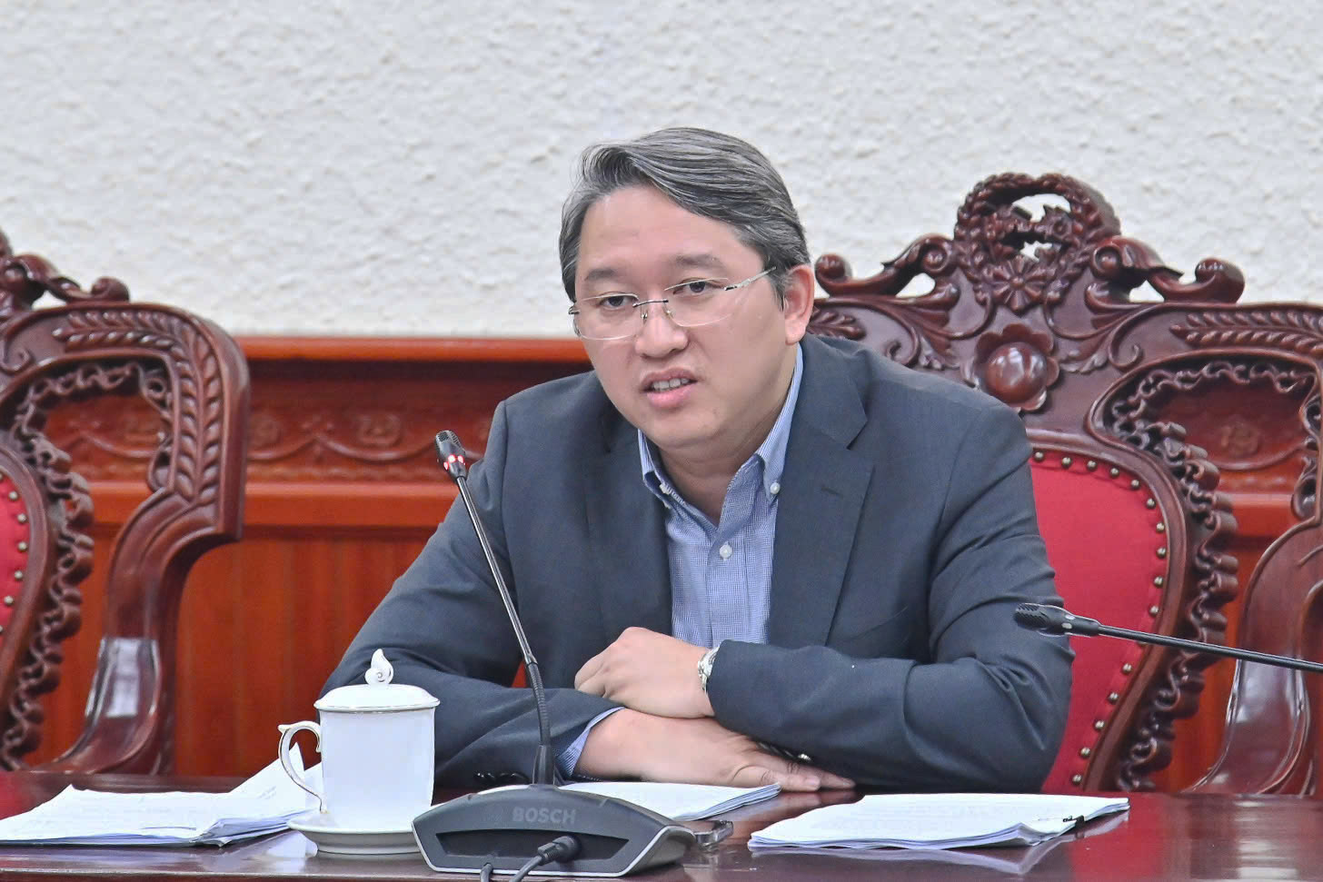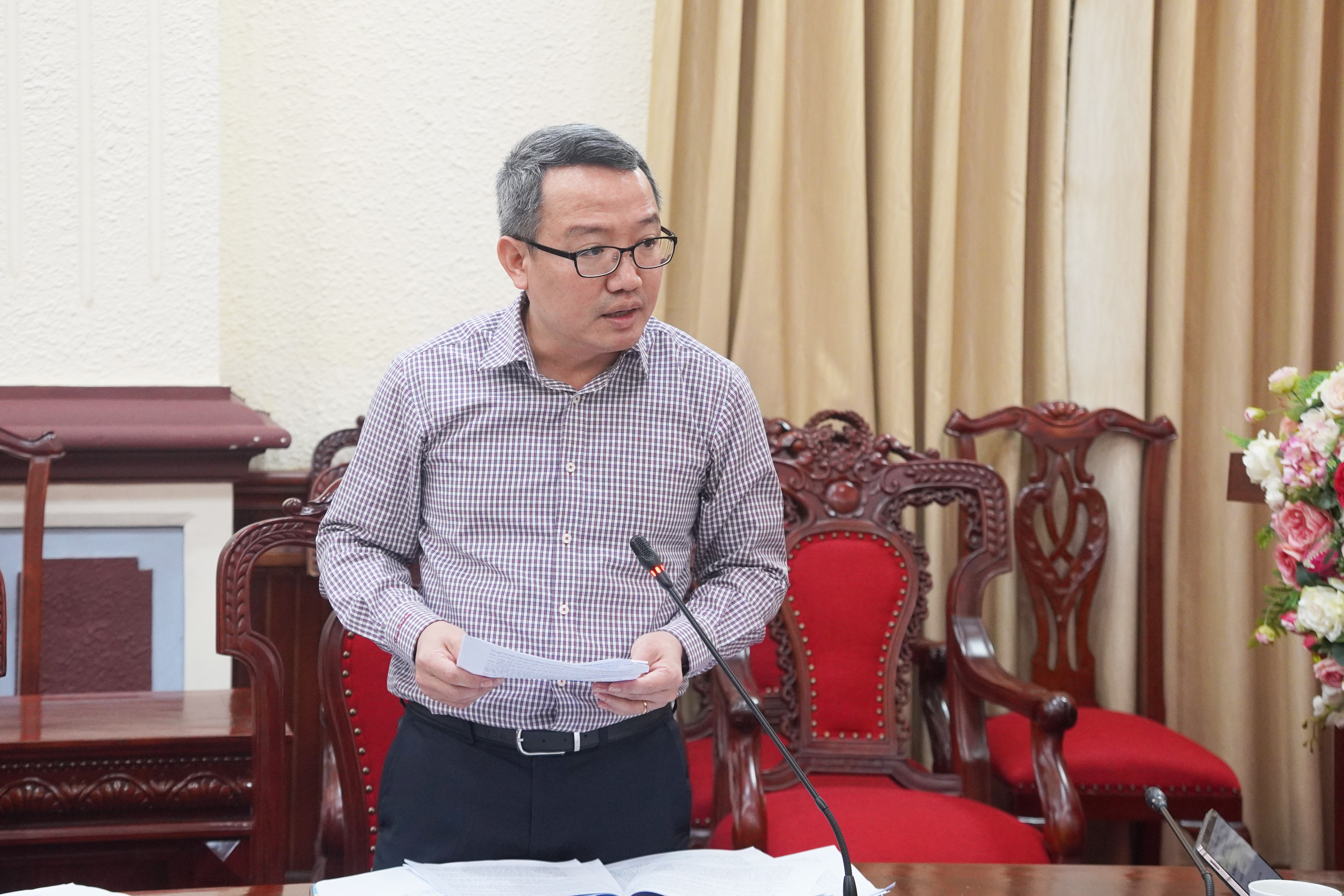 Đồng chí Hồ Quang Huy, Cục trưởng Cục Kiểm tra văn bản quy phạm pháp luật phát biểu tại buổi làm việc.