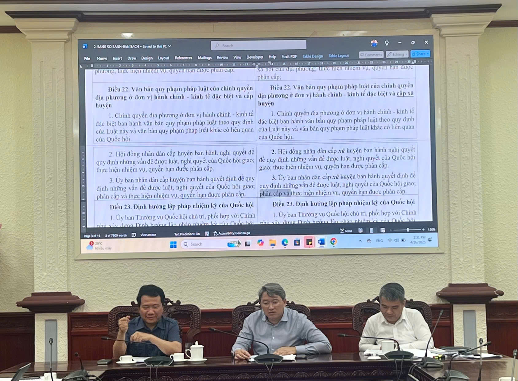 Theo Chương trình Phiên họp thứ 44, sáng ngày 26/4/2025, Ủy ban Thường vụ Quốc hội cho ý kiến về dự án Luật sửa đổi, bổ sung một số điều của Luật Ban hành văn bản quy phạm pháp luật, Bộ trưởng Bộ Tư pháp Nguyễn Hải Ninh cho biết, việc sửa đổi, bổ sung Luật Ban hành văn bản quy phạm pháp luật nhằm thể chế hóa đầy đủ quan điểm chỉ đạo của Đảng, Kết luận của Bộ Chính trị, Ban Bí thư, định hướng sửa đổi, bổ sung một số điều của Hiến pháp, Luật Tổ chức chính quyền địa phương về tiếp tục sắp xếp tổ chức bộ máy của hệ thống chính trị và tổ chức chính quyền địa phương 02 cấp.