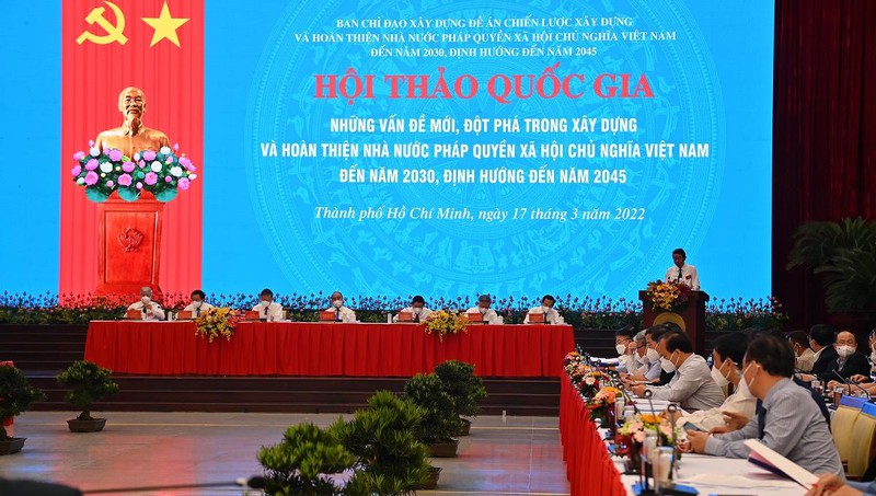 Dự kiến, hội thảo diễn ra trong một ngày. Trong buổi sáng, các đại biểu đã dành thời gian trình bày nhiều tham luận về những đột phá chiến lược và nhiệm vụ trọng tâm trong xây dựng và hoàn thiện Nhà nước pháp quyền xã hội chủ nghĩa Việt Nam đến năm 2030, định hướng đến năm 2045.