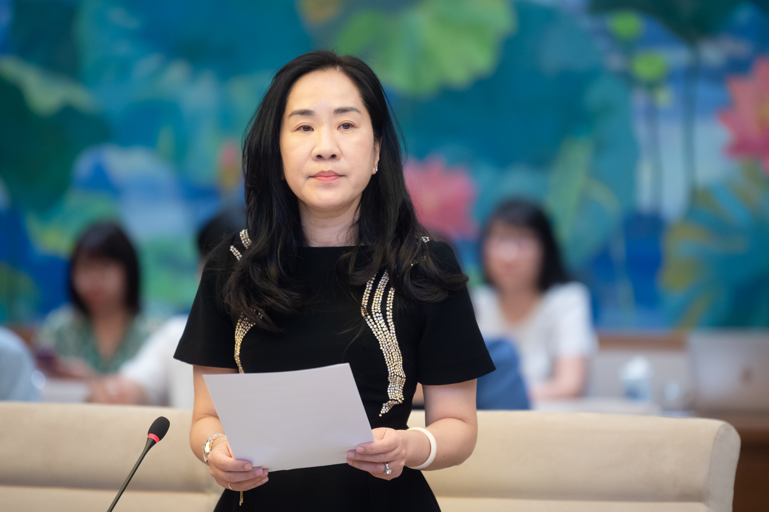 Phó Chủ nhiệm Ủy ban Kinh tế Đoàn Thị Thanh Mai tuyên bố lý do, giới thiệu đại biểu