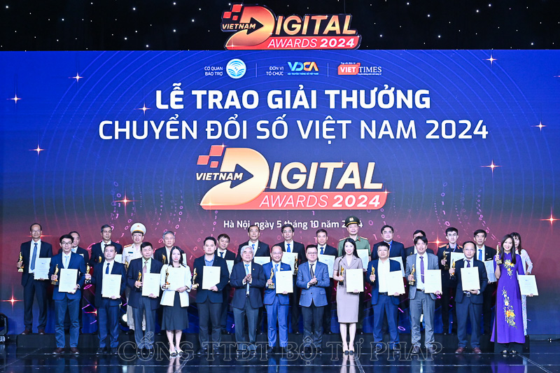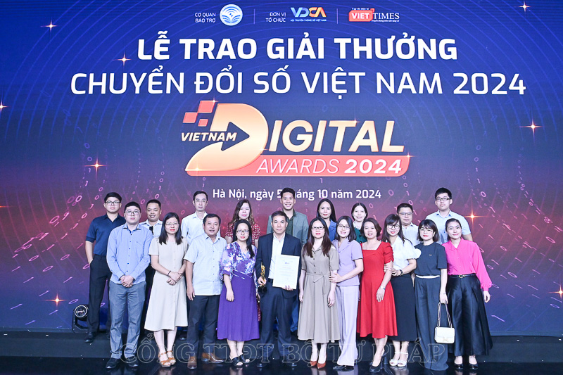 Đại diện các cơ quan, đơn vị lên nhận Giải thưởng Chuyển đổi số Việt Nam 2024.