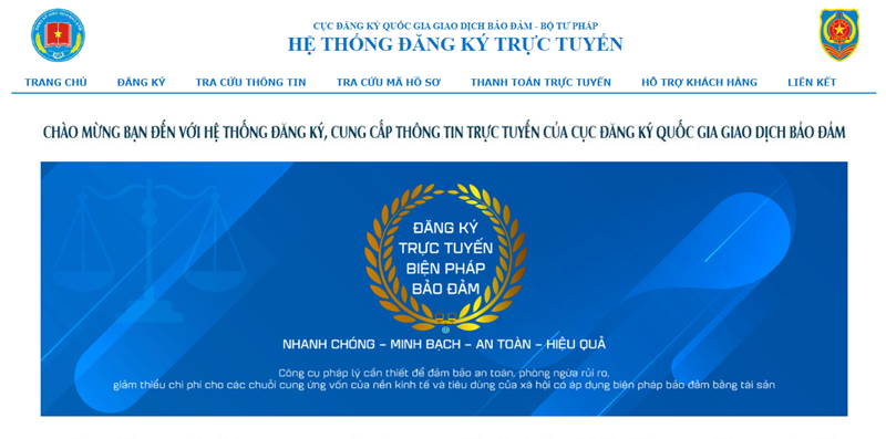 Hệ thống đăng ký trực tuyến của Cục Đăng ký quốc gia giao dịch bảo đảm thuộc Bộ Tư pháp chính thức vận hành từ ngày 19/03/2012 đạt mức độ 3 về dịch vụ công trực tuyến. Thực hiện chủ trương của Đảng, chiến lược, mục tiêu của Chính phủ, của Bộ, ngành Tư pháp trong đẩy mạnh thực hiện chiến lược phát triển Chính phủ điện tử, hướng tới Chính phủ số, phát triển kinh tế số và xã hội số, thúc đẩy chuyển đổi số quốc gia, nhận thức rõ tầm quan trọng của việc ứng dụng công nghệ thông tin trong mọi hoạt động của nền hành chính nhà nước giúp tinh gọn bộ máy, nâng cao năng lực, hiệu quả điều hành, giảm thiểu chi phí và tăng cường tính minh bạch của nền hành chính, Cục Đăng ký quốc gia giao dịch bảo đảm thuộc Bộ Tư pháp đã tích cực chủ động, phối hợp với các đơn vị liên quan triển khai xây dựng, nâng cấp Hệ thống đăng ký trực tuyến về biện pháp bảo đảm bằng động sản. Đến nay, Hệ thống đăng ký trực tuyến đã đạt yêu cầu cung cấp dịch vụ công trực tuyến toàn trình, từ việc tiếp nhận, giải quyết đến ký số và trả kết quả.