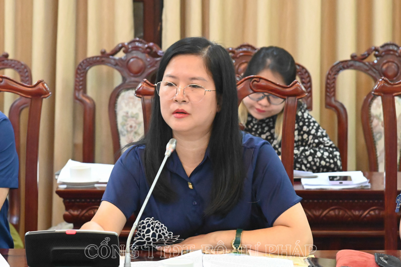 Đồng chí Nguyễn Thị Thu Hòe, Phó Cục trưởng Cục kiểm tra văn bản quy phạm pháp luật phát biểu tại buổi làm việc.