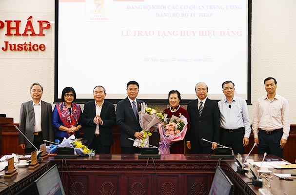 Để ghi nhận sự phấn đấu, rèn luyện và cống hiến cho Đảng, cho sự nghiệp xây dựng và bảo vệ Tổ quốc, ngày 28/03, Đảng ủy Khối các cơ quan Trung ương đã tặng Huy hiệu 30 năm tuổi đảng cho đồng chí Lê Thành Long, Ủy viên Ban Chấp hành Trung ương Đảng, Bí thư Ban Cán sự Đảng, Bộ trưởng Bộ Tư pháp, đồng chí Nguyễn Thanh Tịnh, Ủy viên Ban Cán sự Đảng, Thứ trưởng Bộ Tư pháp và đồng chí Nguyễn Thúy Hiền, nguyên Phó Bí thư Đảng ủy, nguyên Thứ trưởng Bộ Tư pháp, nguyên Phó Chánh án Tòa án nhân dân tối cao.