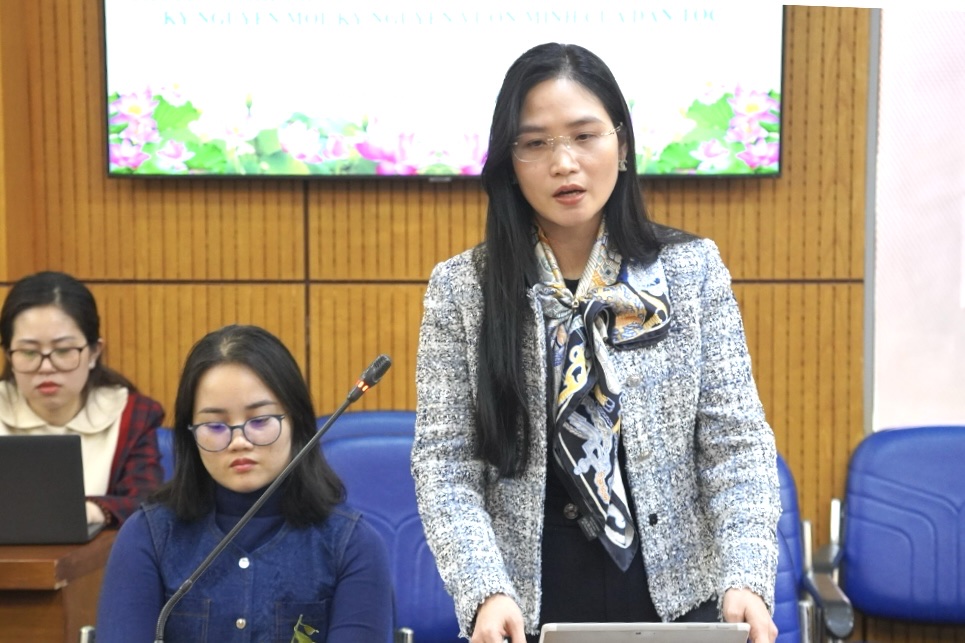 Đồng chí Trương Ngọc Bích, Phó Giám đốc Sở Tư pháp tỉnh Bắc Giang trao đổi tại Hội thảo