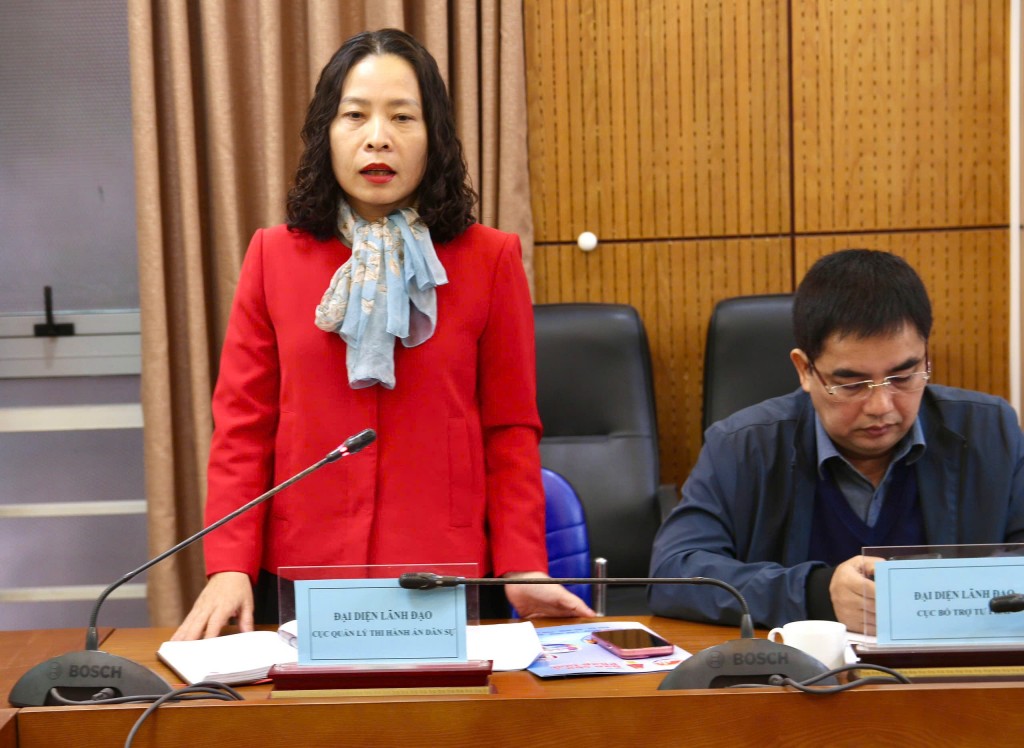 Đại diện các đơn vị thuộc Bộ Tư pháp phát biểu tại Hội nghị