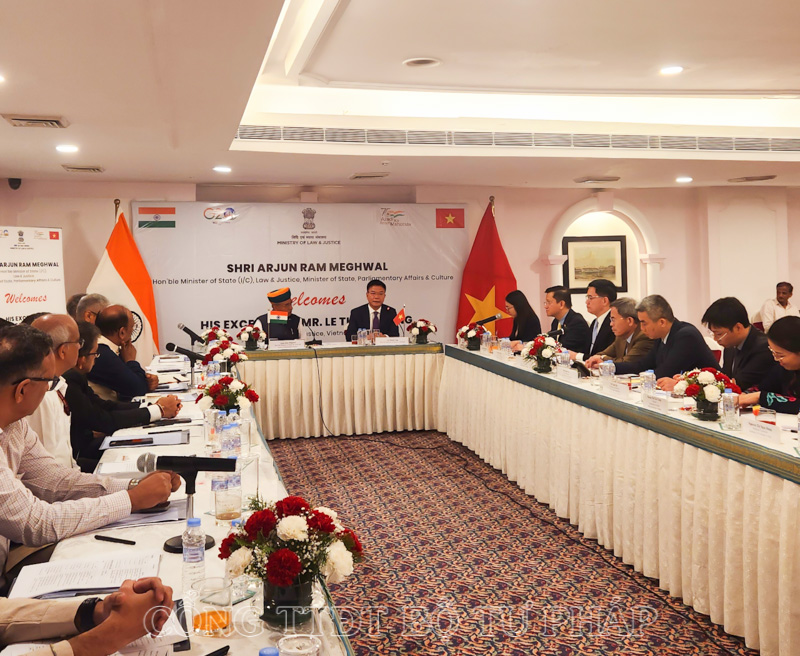 Tại buổi hội đàm giữa hai Bộ trưởng vào ngày 02/7/2023, Bộ trưởng Bộ Pháp luật và Tư pháp Ấn Độ Shi Arjun Ram Meghwal vui mừng chào đón Bộ trưởng Lê Thành Long cùng Đoàn công tác của Bộ Tư pháp Việt Nam trên mảnh đất của các vị thánh, nhà hiền triết, nơi khởi nguồn của nhiều tôn giáo lớn trên thế giới. Nhấn mạnh chuyến thăm diễn ra vào dịp 51 năm thiết lập quan hệ ngoại giao và 7 năm thiết lập Quan hệ đối tác chiến lược toàn diện và đặc biệt trong bối cảnh Ấn Độ đang đẩy mạnh Chính sách hành động hướng Đông, Bộ trưởng Shi Arjun Ram Meghwal đánh giá cao kết quả hợp tác song phương phát triển mạnh mẽ trên các lĩnh vực. Thống kê gần đây cho thấy cộng đồng người Ấn Độ tại Việt Nam cùng với khách du lịch Ấn Độ đến Việt Nam đã lên tới hơn 6.500 người.