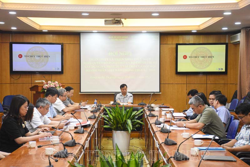Tại điểm cầu Bộ Tư pháp, tham dự Hội nghị có các đồng chí Ủy viên Ban Chấp hành Đảng bộ; Ủy viên Ủy ban Kiểm tra, Ban Tổ chức, Ban Tuyên giáo; Báo cáo viên, Cộng tác viên dư luận xã hội Đảng ủy Bộ; Bí thư, Phó Bí thư, Ủy viên Ban Chấp hành các đảng bộ, chi bộ trực thuộc Đảng bộ Bộ; Bí thư, Phó Bí thư các Chi bộ trực thuộc Đảng bộ cơ sở; đại diện các tổ chức chính trị xã hội của Bộ.