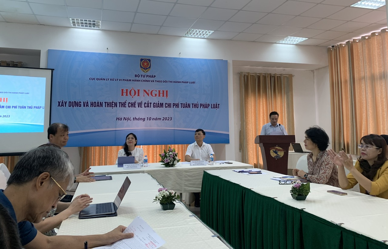 Phát biểu khai mạc Hội nghị, TS. Nguyễn Quốc Hoàn, Cục trưởng Cục Quản lý xử lý vi phạm hành chính và theo dõi thi hành pháp luật cho biết, trong những năm gần đây, cải thiện môi trường kinh doanh, cắt giảm chi phí tuân thủ pháp luật, nâng cao năng lực cạnh tranh là một trong những nhiệm vụ trọng tâm của Chính phủ, các cấp, các ngành. Nhiều nghị quyết của Chính phủ đã và đang được triển khai thực hiện, trong đó tập trung vào cải cách thể chế và thủ tục hành chính, thuận lợi hóa các hoạt động kinh doanh. Việc thực hiện các nghị quyết này đã góp phần giảm gánh nặng chi phí kinh doanh nói chung và chi phí tuân thủ pháp luật nói riêng cho doanh nghiệp. Hội nghị được tổ chức nhằm đánh giá kết quả đạt được, những khó khăn, vướng mắc và đề xuất giải pháp hoàn thiện thể chế về cắt giảm chi phí tuân thủ pháp luật từ đó hướng đến mục tiêu nâng cao điểm số và duy trì thứ hạng chỉ số chi phí tuân thủ pháp luật (chỉ số B1).