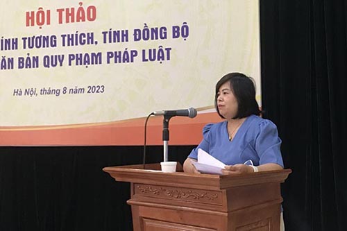 Phát biểu tại Hội thảo, đại diện Vụ Pháp luật quốc tế cũng đưa ra một số lưu ý về bảo đảm tính tương thích với điều ước quốc tế trong hoạt động xây dựng pháp luật của Bộ Tư pháp đối với: Nhiệm vụ chủ trì xây dựng các văn bản quy phạm pháp luật trong nước thực hiện điều ước quốc tế; nhiệm vụ góp ý, thẩm định đề nghị xây dựng và dự án, dự thảo văn bản quy phạm pháp luật; công việc rà soát pháp luật Việt Nam trước và sau khi ký kết điều ước quốc tế.
