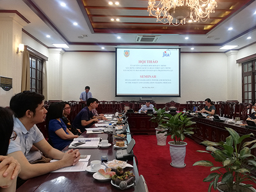Hội thảo cũng được nghe chia sẻ kinh nghiệm của Nhật Bản trong quy trình xây dựng chính sách và ban hành văn bản quy phạm pháp luật từ ông Yokomaku Kosuke, Cố vấn trưởng dự án JICA và ông Edagawa Mitsushi, Chuyên gia dự án JICA.