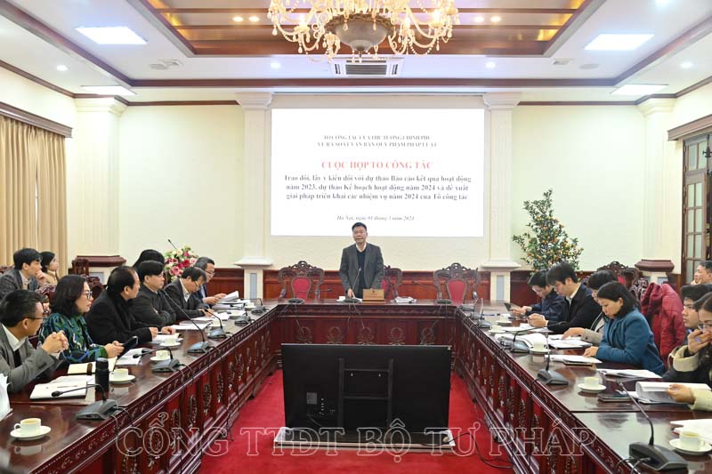 Kết luận cuộc họp, Bộ trưởng Lê Thành Long đánh giá cao những ý kiến góp ý, trao đổi của các thành viên Tổ công tác cho quá trình triển khai nhiệm vụ của Tổ công tác trong thời gian vừa qua và dự thảo Kế hoạch hoạt động năm 2024 của Tổ công tác.