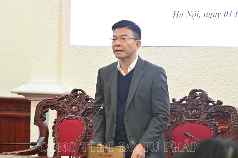 Bộ trưởng Bộ Tư pháp Lê Thành Long phát biểu tại cuộc họp