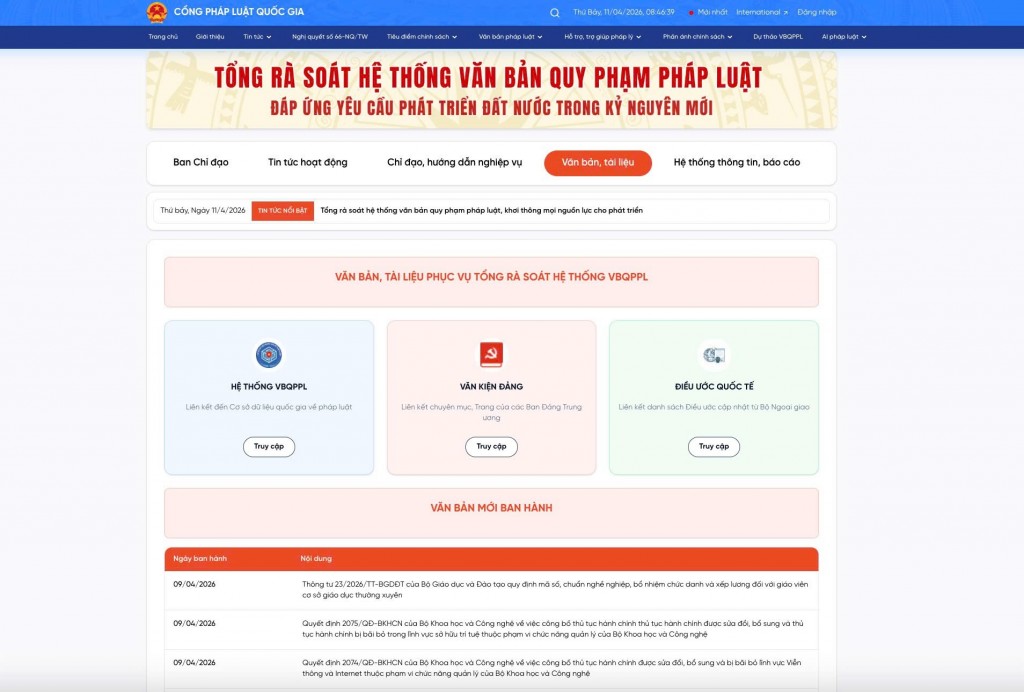 Đây là không gian thông tin tập trung, cập nhật đầy đủ, kịp thời các hoạt động chỉ đạo, điều hành, tin tức, mà còn phản ánh kịp thời kết quả triển khai và các nội dung liên quan đến công tác tổng rà soát hệ thống VBQPPL trên phạm vi cả nước.