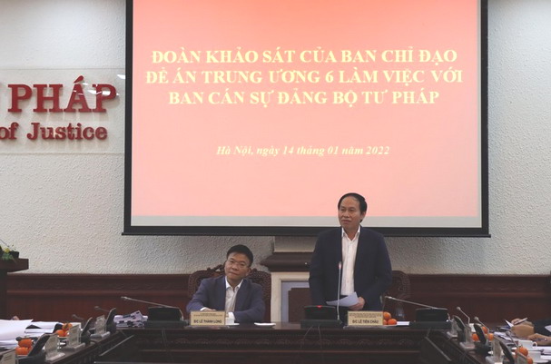 Đồng tình và chia sẻ với những khó khăn, vướng mắc mà Bộ Tư pháp báo cáo, ông Lê Tiến Châu cũng ghi nhận các kiến nghị và sẽ báo cáo đến Ban Chỉ đạo để cuộc khảo sát hiệu quả, đóng góp vào Đề án chung. Không khí buổi làm rất khẩn trương nhưng ông gửi lời cảm ơn những kinh nghiệm, bài học, cách làm của Bộ góp phần hữu ích cho hoạt động của Đoàn.