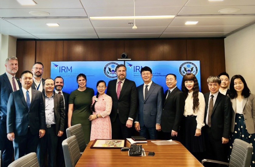 Đoàn công tác chụp ảnh lưu niệm cùng đại diện Bộ Ngoại giao Hoa Kỳ