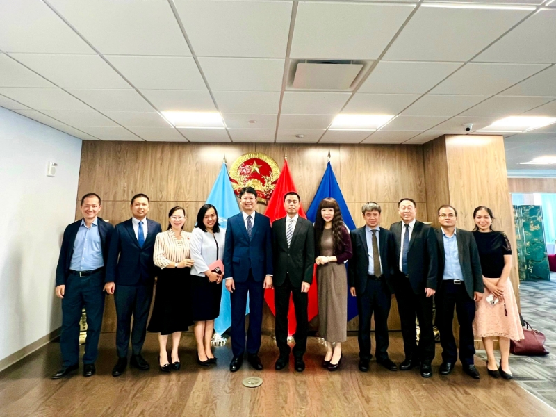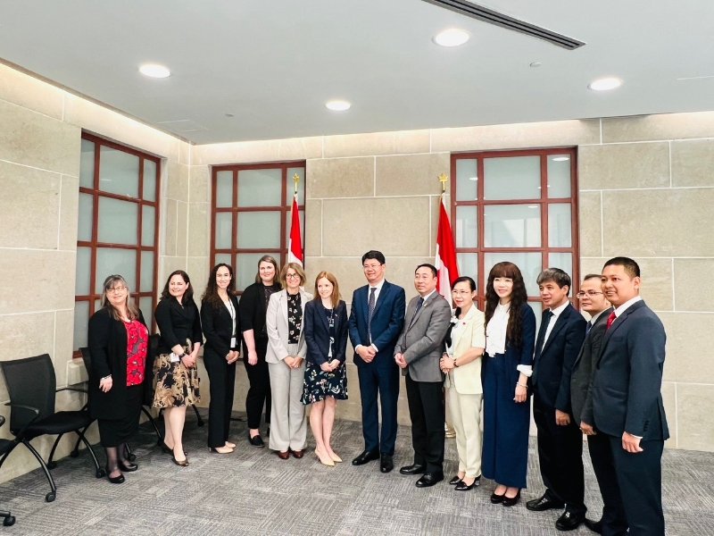 Đoàn công tác chụp ảnh lưu niệm cùng cán bộ Đại sứ quán Việt Nam tại Canada