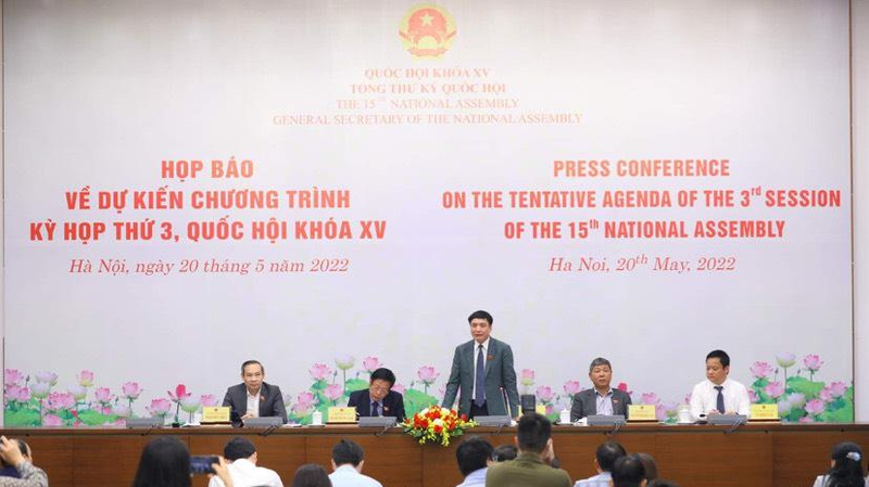Thông tin trên được Phó Chủ nhiệm Văn phòng Quốc hội Vũ Minh Tuấn đưa ra tại họp báo về dự kiến chương trình Kỳ họp thứ 3, Quốc hội khóa XV do Văn phòng Quốc hội tổ chức chiều qua, 20/5.