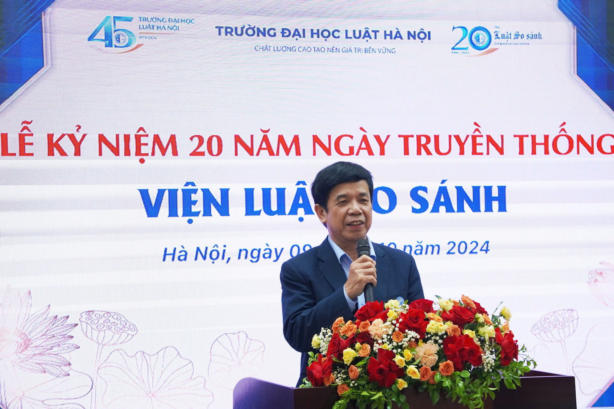 Phát biểu chào mừng kỷ niệm 20 năm thành lập Viện Luật so sánh, PGS.TS. Bùi Đăng Hiếu, Viện trưởng Viện Luật so sánh chia sẻ, Lễ kỷ niệm này là dịp để các Lãnh đạo, nguyên Lãnh đạo Viện, tập thể giáo viên, viên chức, người lao động, các đối tác của Viện cùng nhau nhìn lại những thành tựu đã đạt được của Viện Luật so sánh trong suốt chặng đường 20 năm qua. Để đạt được những thành tựu, kết quả đó là sự chỉ đạo, hỗ trợ của Lãnh đạo Nhà trường; các viên chức của Viện đã dành trọn tâm huyết vào những trang nghiên cứu, miệt mài trên các giảng đường để giảng bài cho các em sinh viên; các nhà khoa học, các cán bộ chủ chốt và các cộng tác viên đã cộng tác nhiệt tình với Viện để thực hiện các đề tài, tổ chức các hội thảo và nhiều hoạt động khác; các luật sư và các doanh nghiệp đã sát cánh, nhiệt thành và hỗ trợ tích cực nhất cho các hoạt động của Viện; các học viên và sinh viên với lòng tin vào sự dẫn dắt của các thầy, cô giáo cùng nhau lập nhiều thành tích trong học tập.