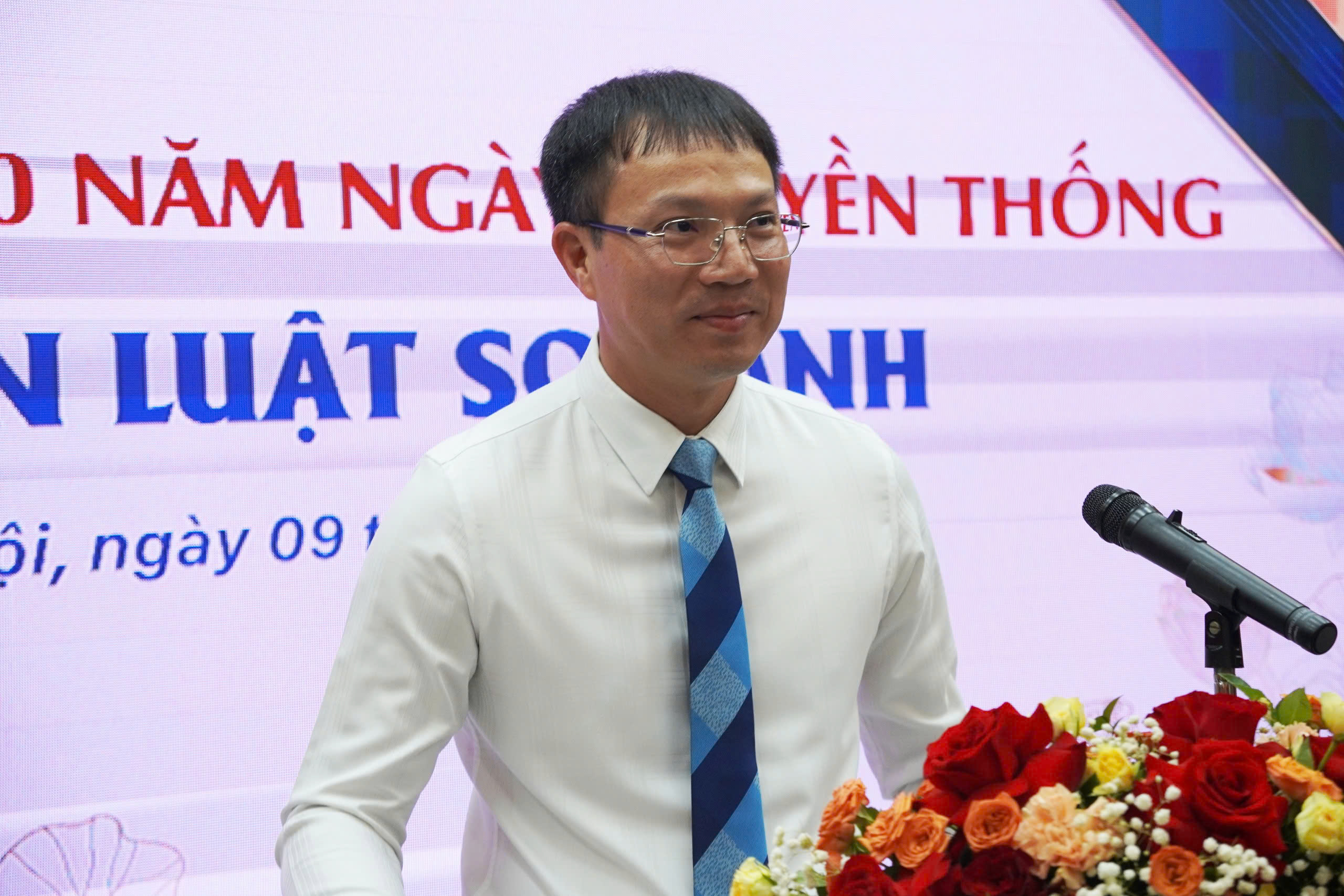 TS. Đoàn Trung Kiên - Hiệu trưởng Trường Đại học Luật Hà Nội phát biểu tại Lễ kỷ niệm.