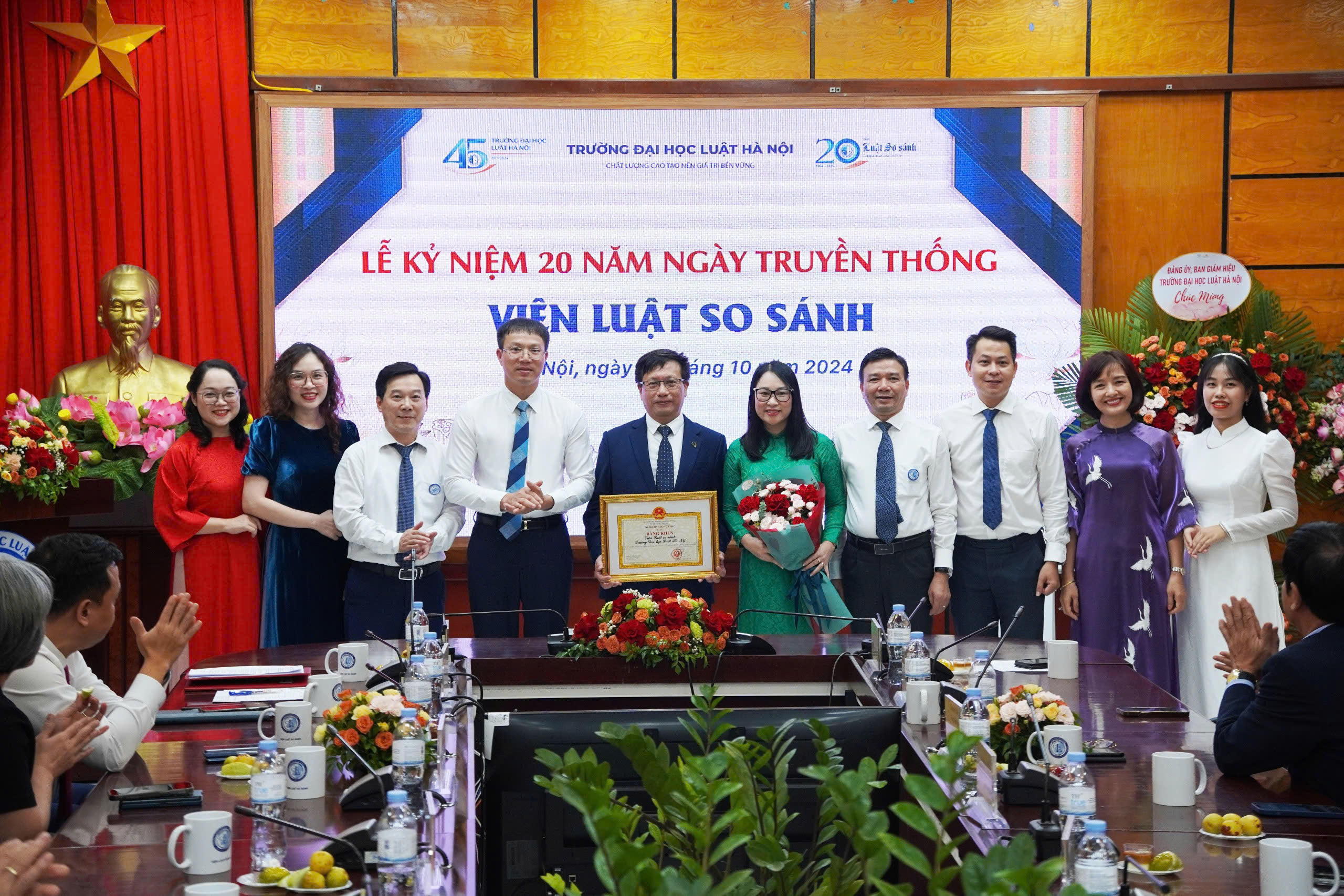 Tại buổi Lễ, tập thể Viện Luật so sánh, Trường Đại học Luật Hà Nội đã vinh dự đón nhận Bằng khen của Bộ trưởng Bộ Tư pháp vì đã lập được thành tích xuất sắc trong nghiên cứu khoa học pháp lý so sánh và ứng dụng trong hoạt động đào tạo và xây dựng pháp luật.