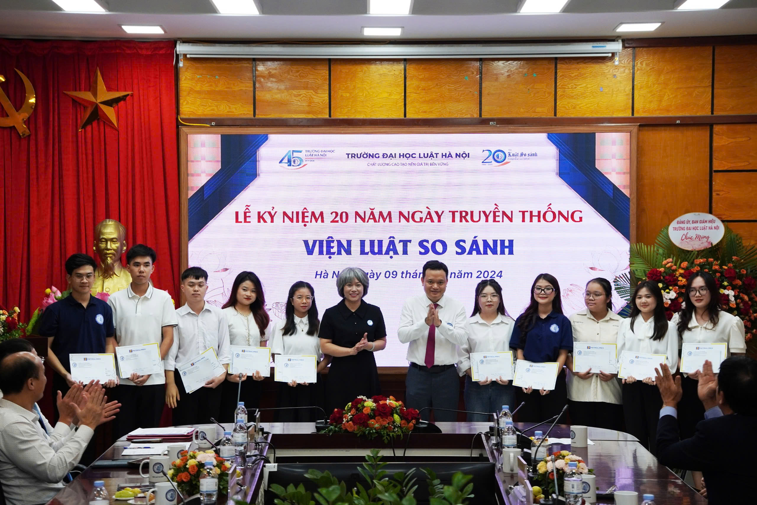 Trong những năm gần đây, Viện Luật so sánh đã trở thành cầu nối, kết nối các doanh nghiệp, cơ quan, tổ chức, cá nhân đến gần hơn với các bạn sinh viên Trường Đại học Luật Hà Nội. Trong quá trình học tập, rèn luyện tại Trường, nhiều em sinh viên đã gặp phải khó khăn trong việc duy trì học tập, bên cạnh sự hỗ trợ rất lớn từ phía Nhà trường, Viện Luật so sánh cũng đã cố gắng kêu gọi các đối tác hỗ trợ, giúp đỡ thiết thực, kịp thời cho các em sinh viên; ghi nhận, biểu dương, khích lệ đối với các em sinh viên có thành tích đặc biệt trong học tập, nghiên cứu khoa học, rèn luyện và các hoạt động vì cộng đồng. Tại buổi Lễ, Viện đã phối hợp cùng Phòng Đào tạo đại học và Phòng Công tác sinh viên trao tặng 10 suất học bổng cho các em sinh viên tiêu biểu, các em bị ảnh hưởng bởi cơn bão số 3 Yagi do Tập đoàn Xăng dầu Việt Nam trao.