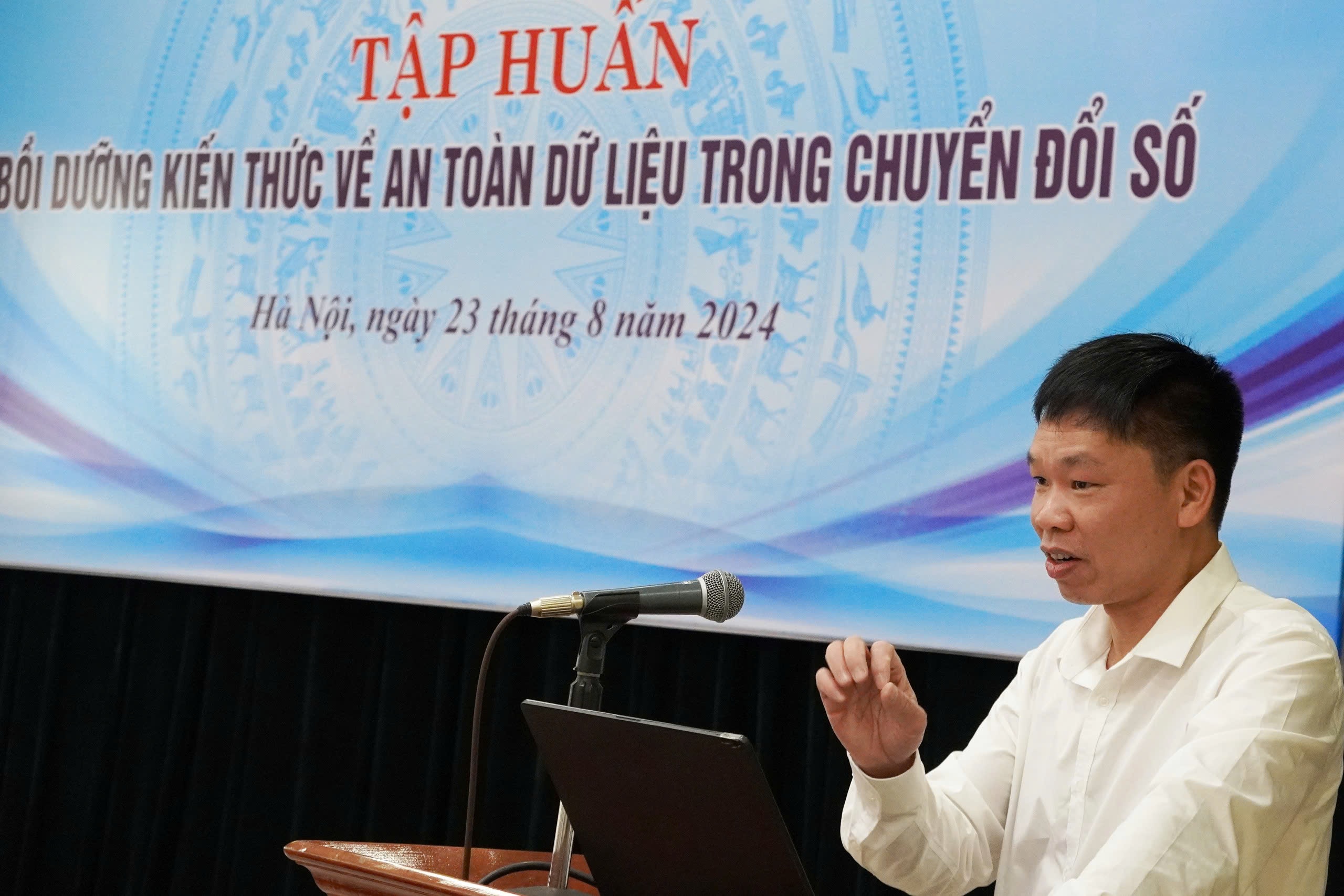 Ông Trần Nguyên Chung, Phòng An toàn thông tin, Cục An toàn thông tin, Bộ Thông tin và Truyền thông chia sẻ tại Lớp bồi dưỡng kiến thức về an toàn dữ liệu trong chuyển đổi số.