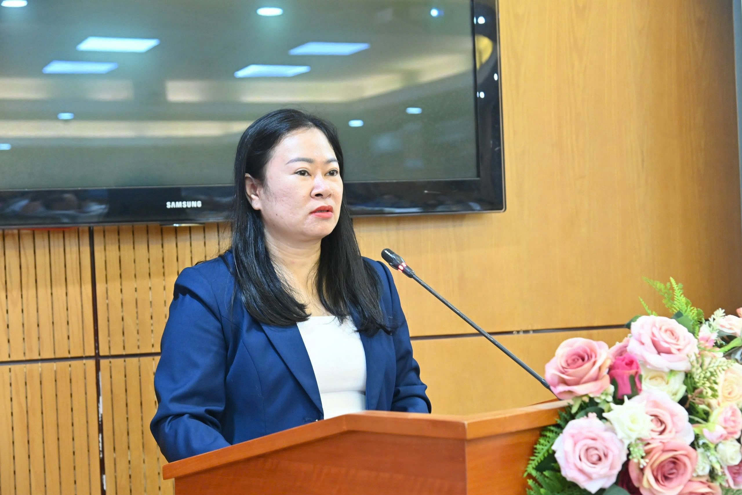 Đồng chí Trần Thị Mai Hương chia sẻ tại Hội nghị.