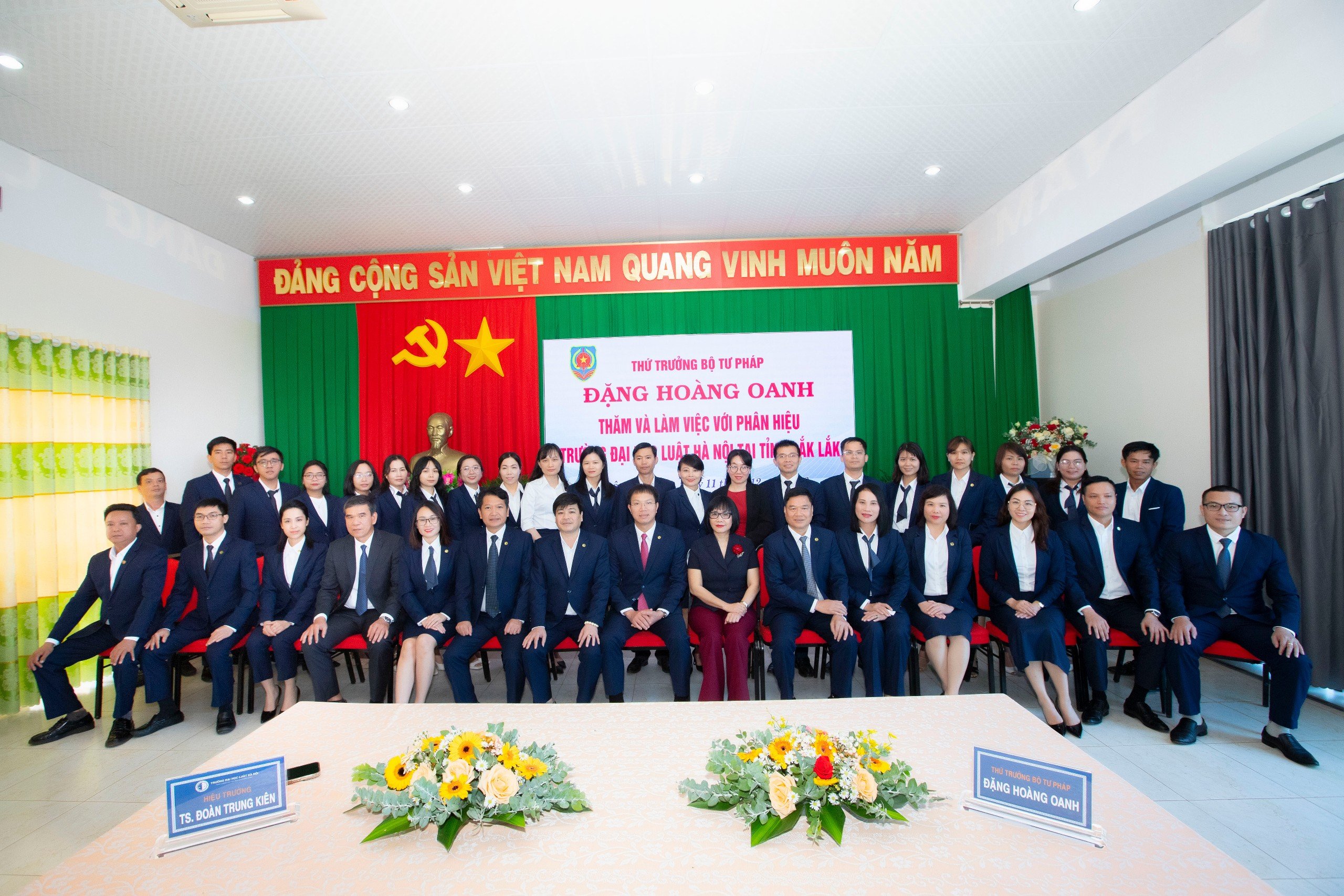 Nhân dịp hướng tới kỷ niệm 05 năm Ngày thành lập Phân hiệu Trường Đại học Luật Hà Nội tại tỉnh Đăk Lắk, thay mặt Ban cán sự Đảng, Đảng ủy, Lãnh đạo Bộ Tư pháp, Thứ trưởng Đặng Hoàng Oanh gửi lời chúc tốt đẹp nhất tới toàn thể Ban Giám hiệu, các giảng viên, viên chức, người lao động và các em sinh viên của Phân hiệu. Với những kết quả đã đạt được trong 05 năm vừa qua, sự phối hợp, hỗ trợ tích cực và chặt chẽ của trụ sở chính, các đơn vị trong Bộ và đặc biệt với tinh thần, trách nhiệm cao, sự quyết tâm chính trị và truyền thống đoàn kết, Thứ trưởng bày tỏ hi vọng và tin tưởng Phân hiệu Trường Đại học Luật Hà Nội sẽ tiếp tục hoàn thành xuất sắc các nhiệm vụ được giao, đào tạo được nhiều hơn nữa nguồn nhân lực pháp luật có chất lượng cao cho ngành tư pháp và đất nước. Hi vọng trong thời gian tới, Đại học Luật Hà Nội và Phân hiệu sẽ ngày càng khẳng định được uy tín, thương hiệu của Trường Đại học Luật Hà Nội để trở thành trường trọng điểm đào tạo cán bộ về pháp luật, có vai trò dẫn dắt trong đào tạo cán bộ pháp luật của cả nước, có uy tín trong khu vực Đông Nam Á và thế giới theo Quyết định số 1156/QĐ-TTg của Thủ tướng Chính phủ.
