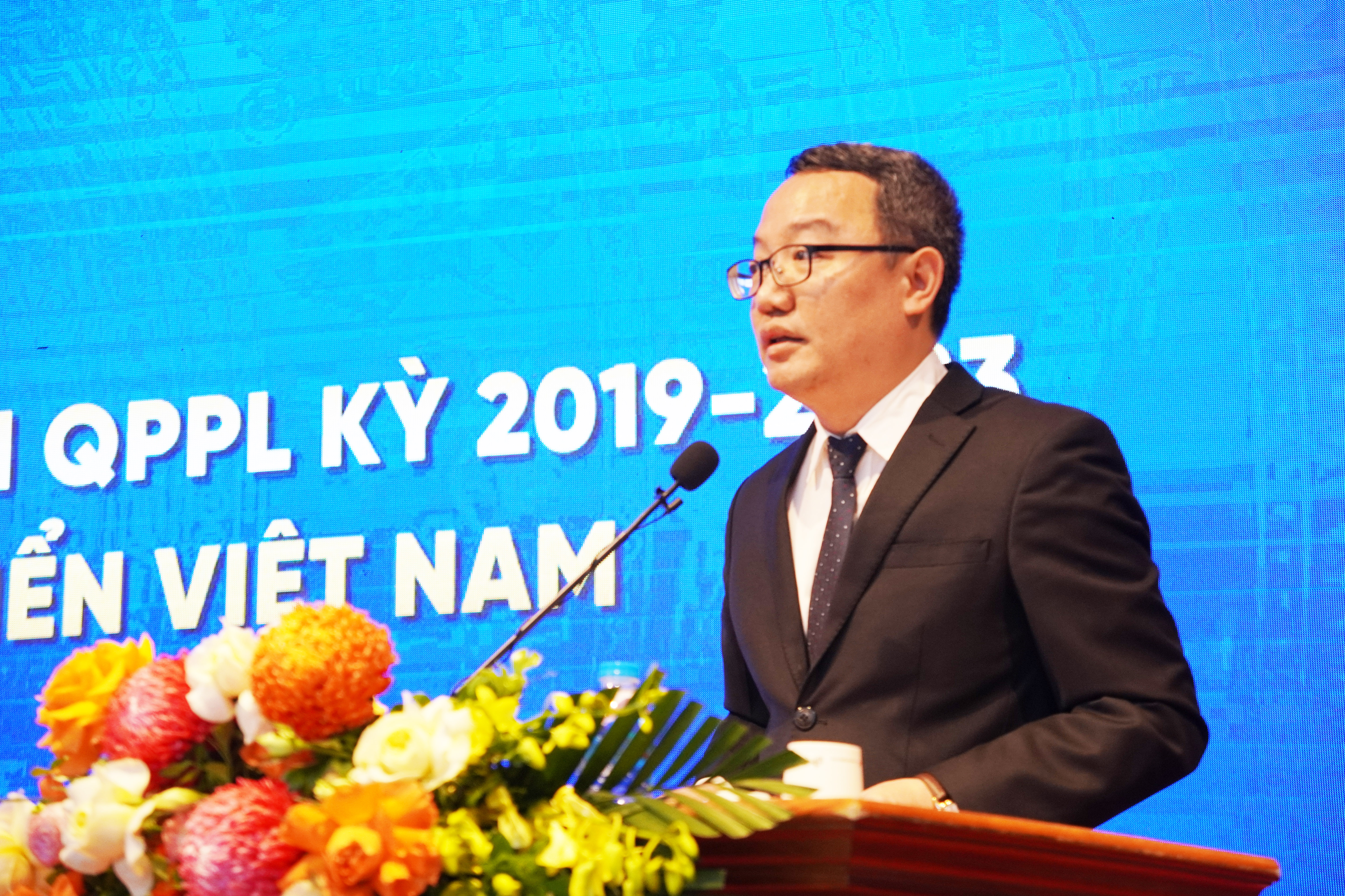 Cục trưởng Cục Kiểm tra văn bản quy phạm pháp luật Hồ Quang Huy báo cáo kết quả công tác hệ thống hóa văn bản quy phạm pháp luật kỳ 2019 - 2023 và công bố công tác xây dựng Bộ pháp điển Việt Nam