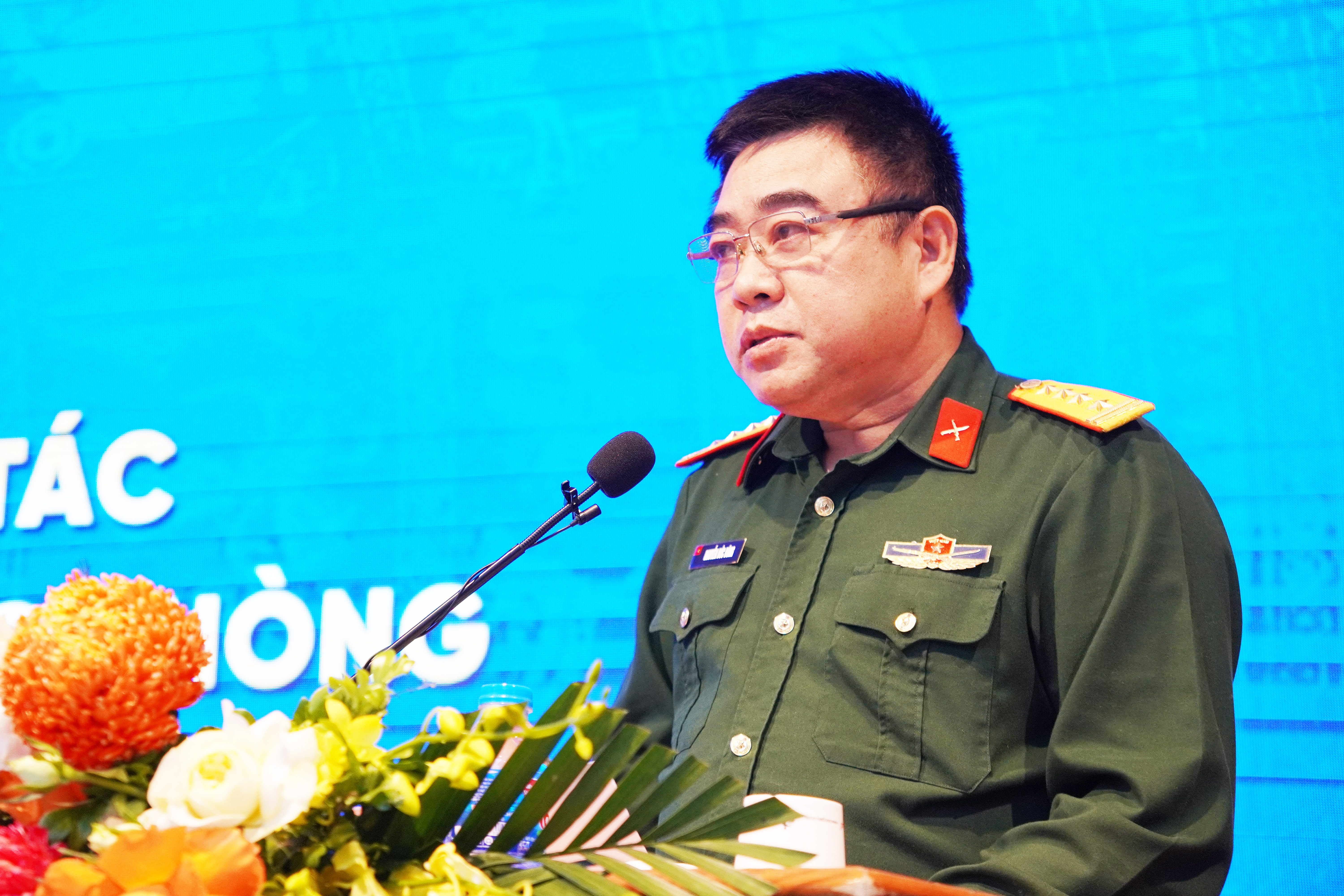 Đại tá Nguyễn Đức Dũng, Phó Vụ trưởng Vụ Pháp chế, Bộ Quốc phòng trao đổi tại Hội nghị