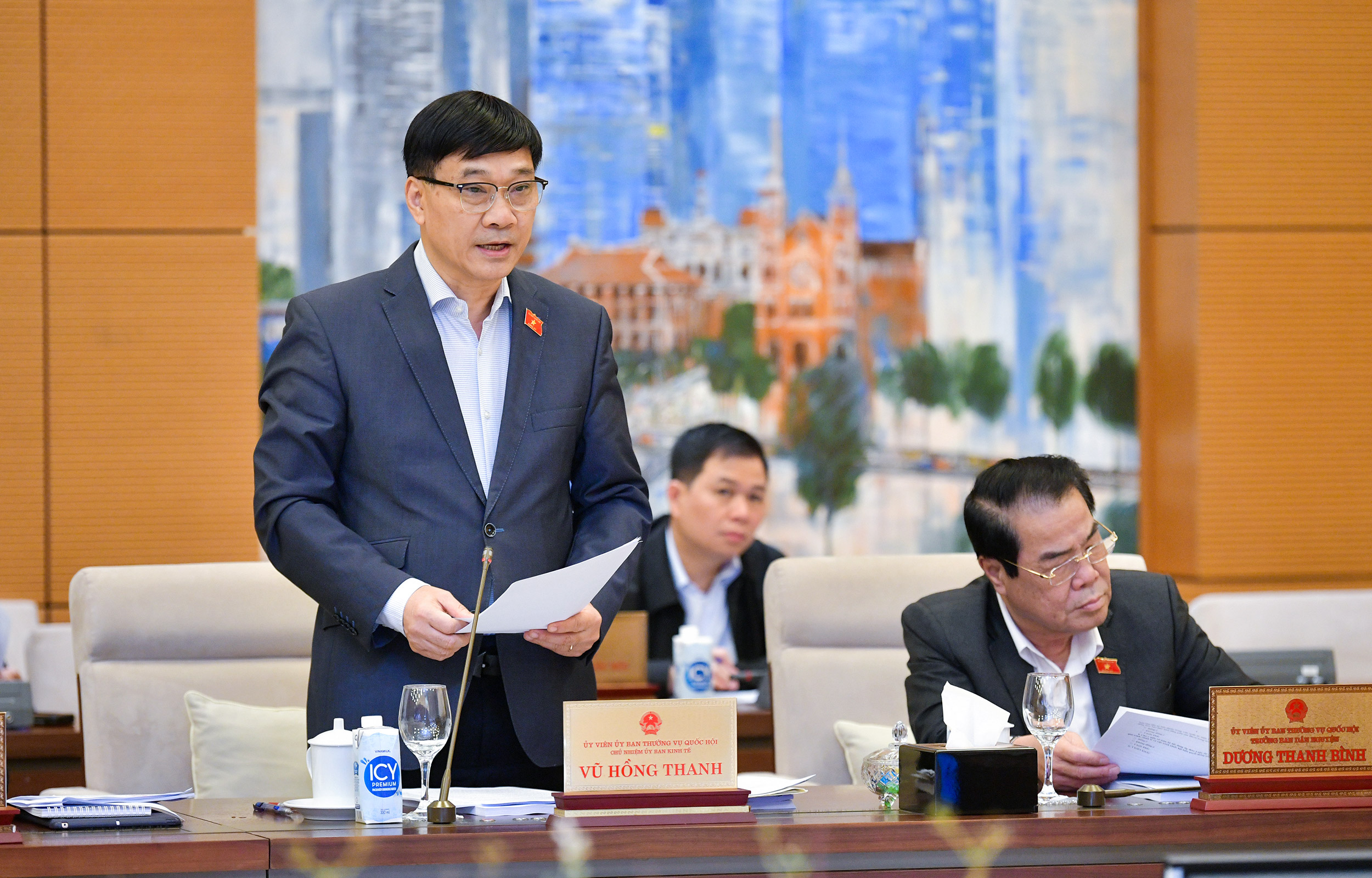 Chủ nhiệm Ủy ban Kinh tế của Quốc hội Vũ Hồng Thanh trình bày tóm tắt dự thảo báo cáo của Ủy ban Thường vụ Quốc hội về việc giải trình, tiếp thu, chỉnh lý dự thảo Luật Các tổ chức tín dụng (sửa đổi)