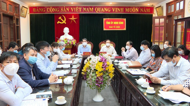 Ảnh: Hội nghị trực tuyến tại điểm cầu Ninh Bình.