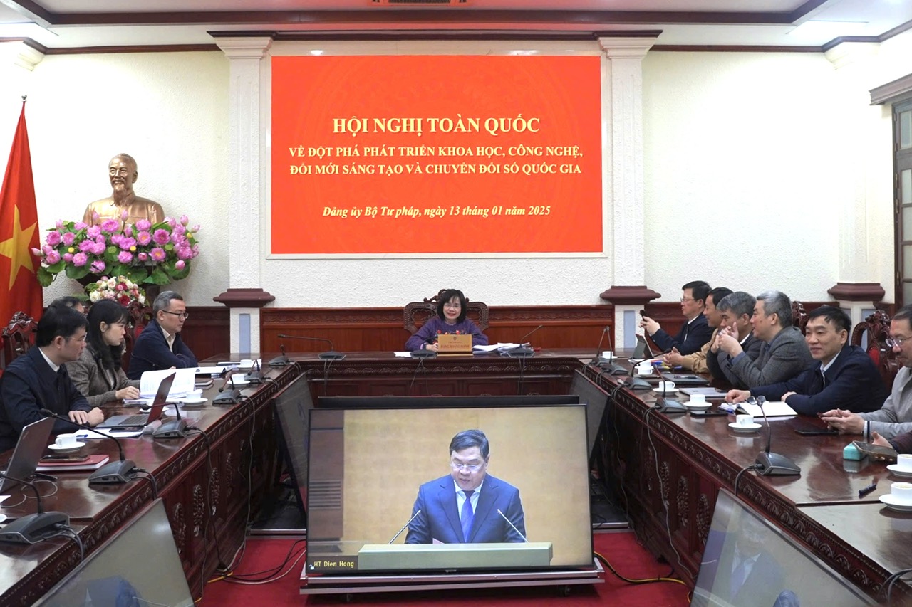 Tham dự Hội nghị tại điểm cầu Bộ Tư pháp có đồng chí Đặng Hoàng Oanh, Ủy viên Ban Cán sự Đảng, Bí thư Đảng ủy, Thứ trưởng Bộ Tư pháp; các đồng chí Ủy viên Ban Chấp hành Đảng bộ Bộ Tư pháp; Ủy viên Ủy ban Kiểm tra Đảng ủy Bộ Tư pháp, Ban Tổ chức, Ban Tuyên giáo; Bí thư các Đảng bộ, Chi bộ trực thuộc Đảng bộ Bộ Tư pháp; Ủy viên Công đoàn, Đoàn Thanh niên, Hội Cựu Chiến binh, Chi hội Luật gia Bộ Tư pháp; các báo cáo viên, dư luận xã hội của Đảng ủy Bộ Tư pháp; thành viên, Tổ giúp việc Ban Chỉ đạo Chuyển đổi số ngành Tư pháp.