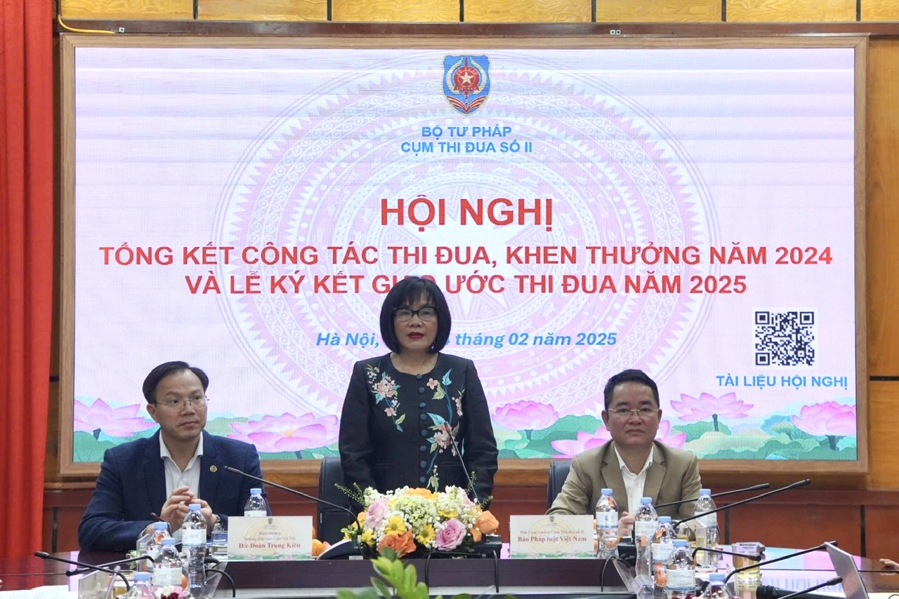 Tại Hội nghị, các đại biểu đã được nghe công bố Quyết định về việc cử Cụm trưởng, Phó Cụm trưởng Cụm thi đua số II năm 2025. Theo đó, Cụm trưởng Cụm thi đua số II năm 2025 được giao cho đồng chí Vũ Hoài Nam, Tổng Biên tập Báo Pháp luật Việt Nam; Phó Cụm trưởng Cụm thi đua số II năm 2025 được giao cho đồng chí Nguyễn Văn Cương, Viện trưởng Viện Chiến lược và Khoa học pháp lý. Thành viên của Cụm thi đua số II năm 2025 gồm 09 đơn vị: Trường Đại học Luật Hà Nội; Học viện Tư pháp; Viện Chiến lược và Khoa học pháp lý; Tạp chí Dân chủ và Pháp luật; Báo Pháp luật Việt Nam; Nhà xuất bản Tư pháp; Trường Cao đẳng Luật miền Bắc; Trường Cao đẳng Luật miền Trung; Trường Cao đẳng Luật miền Nam.
