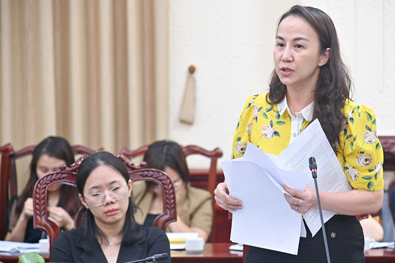 Đại diện Vụ Pháp luật dân sự - kinh tế, Bộ Tư pháp phát biểu tại cuộc họp