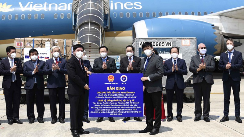 Một điểm nhấn trong các chuyến công tác của Chủ tịch QH là những kết quả cụ thể của “ngoại giao vaccine” và hợp tác phòng chống đại dịch COVID-19. Trong khuôn khổ chuyến công tác châu Âu, Bỉ và Slovakia, đã hỗ trợ 200.000 liều vaccine và cam kết hỗ trợ, nhượng lại nhiều triệu liều vaccine. Một số hợp đồng liên quan đến sản xuất kit xét nghiệm, nghiên cứu và sản xuất vaccine đã được ký kết. Nhiều tổ chức, doanh nghiệp, cá nhân đã hỗ trợ các trang thiết bị và vật tư y tế, nhất là các bộ kit xét nghiệm COVID-19, tổng trị giá đạt trên 1.028 tỷ đồng.