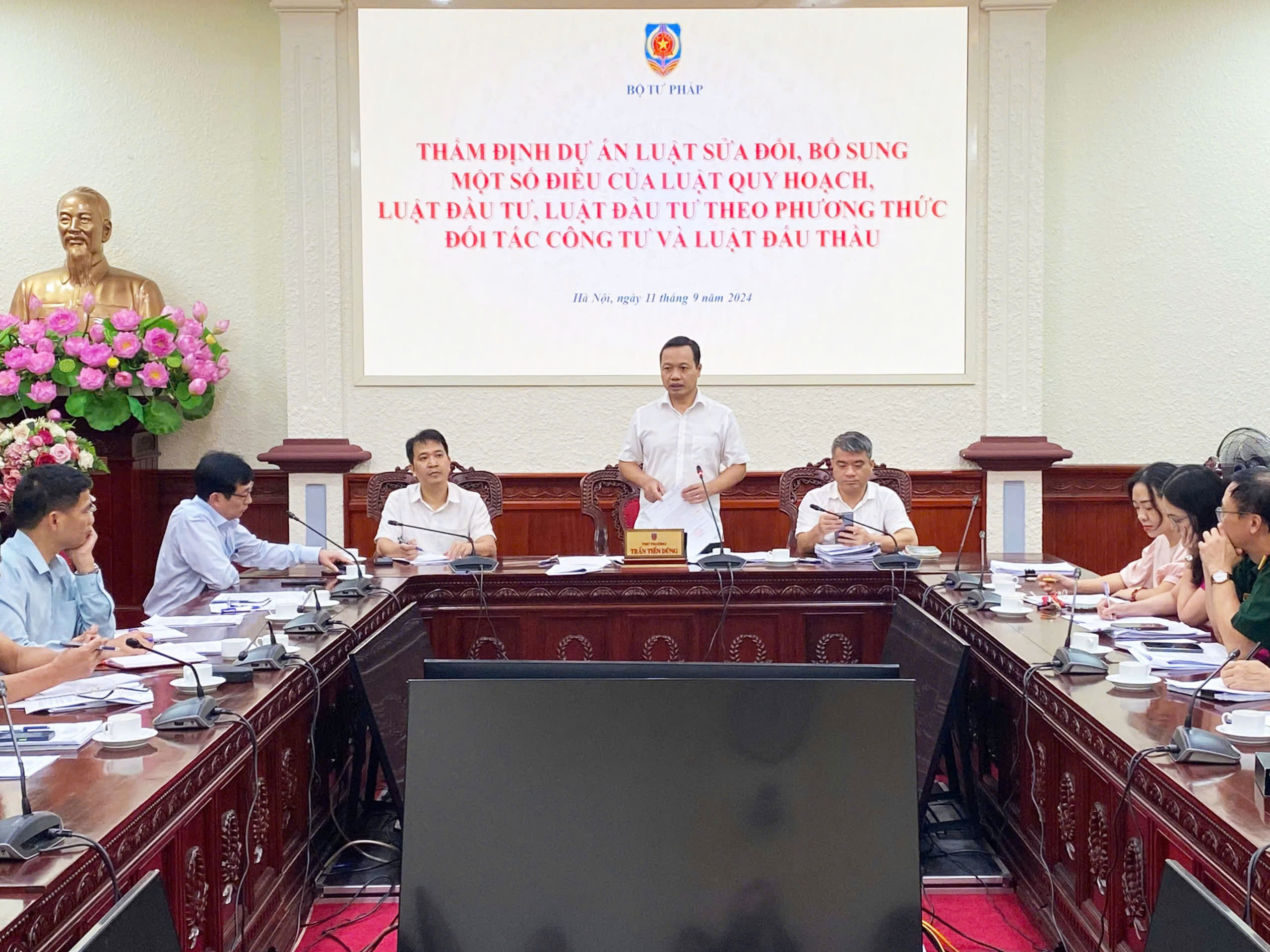 Kết luận phiên họp thẩm định, Thứ trưởng Bộ Tư pháp Trần Tiến Dũng đánh giá cao tinh thần trách nhiệm và nỗ lực của Bộ Kế hoạch và Đầu tư trong việc kịp thời xây dựng Dự án Luật sửa đổi, bổ sung một số điều của Luật Quy hoạch, Luật Đầu tư, Luật Đầu tư theo phương thức đối tác công tư, đồng thời, ghi nhận các ý kiến góp ý chất lượng, trách nhiệm và mang tính xây dựng của các thành viên Hội đồng thẩm định.