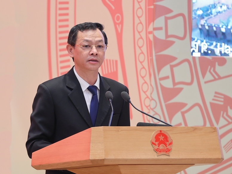 Trung tướng Nguyễn Văn Long, Thứ trưởng Bộ Công an báo cáo tại Hội nghị - Ảnh: VGP/Nhật Bắc