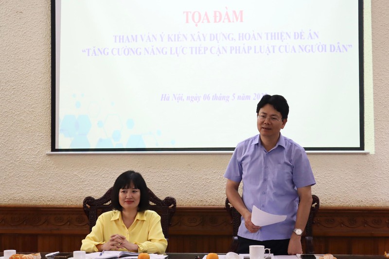 Sáng 6/5, Bộ Tư pháp đã tổ chức toạ đàm tham vấn ý kiến xây dựng, hoàn thiện Đề án “Tăng cường năng lực tiếp cận pháp luật của người dân”. Thứ trưởng Bộ Tư pháp Nguyễn Thanh Tịnh chủ trì toạ đàm.