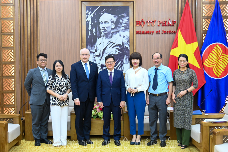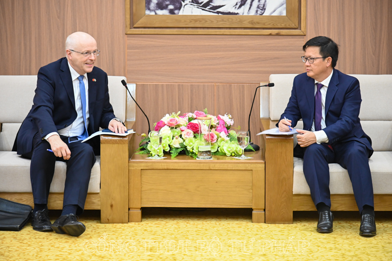 Thứ trưởng cũng chia sẻ với Đại sứ Keijo Norvanto nhu cầu của Bộ Tư pháp về hợp tác tư pháp và pháp luật để đáp ứng yêu cầu của Nghị quyết 27-NQ/TW ngày 09/11/2022 của Ban chấp hành Trung ương Đảng Khóa XIII về tiếp tục xây dựng và hoàn thiện nhà nước pháp quyền xã hội chủ nghĩa cũng như Nghị quyết số 77/NQ-CP ngày 12/5/2023 của Chính phủ về Chương trình hành động của Chính phủ thực hiện Nghị quyết số 27-NQ/TW.