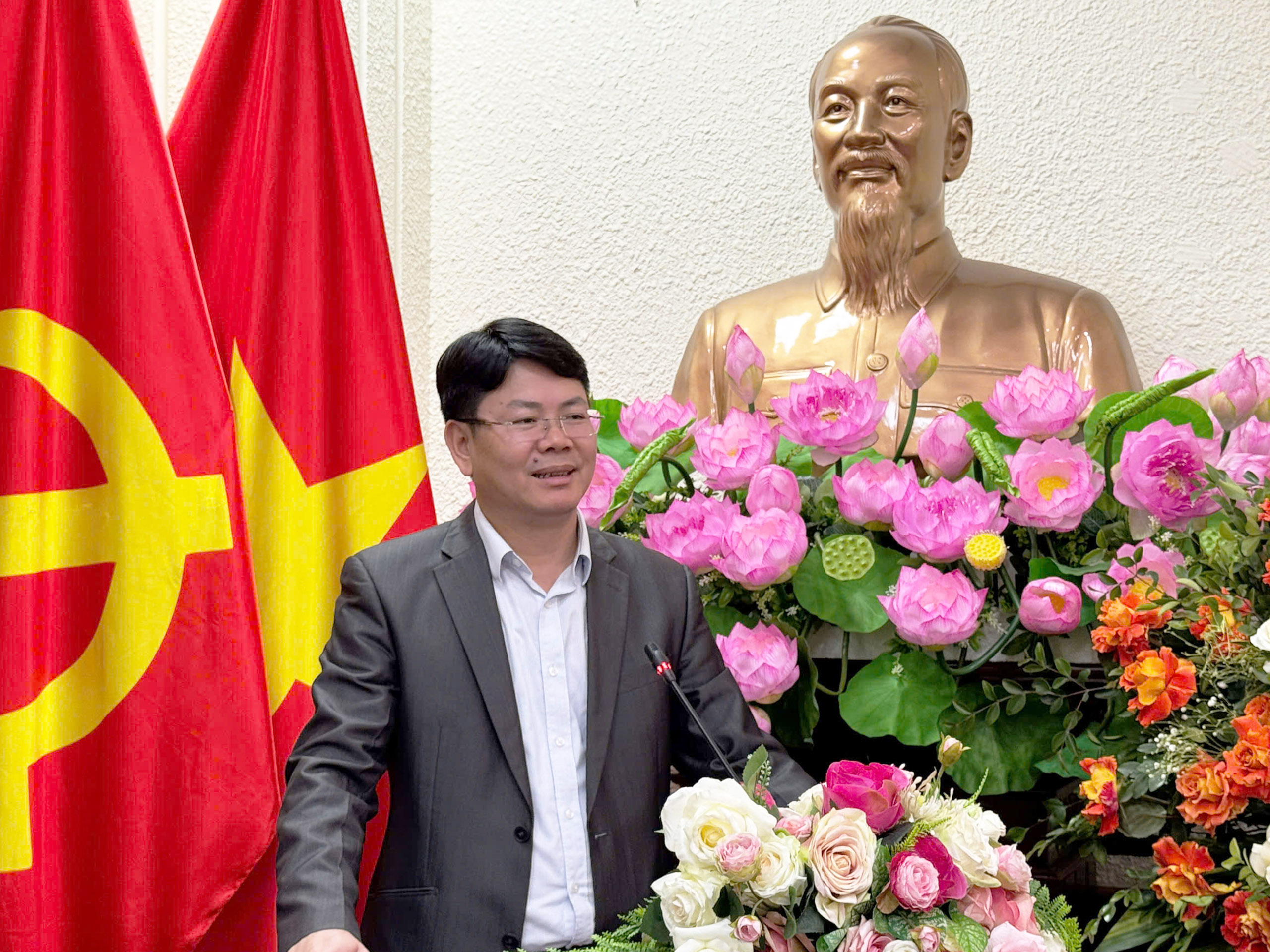 Đồng chí Nguyễn Thanh Tịnh, Phó Bí thư thường trực Đảng ủy, Thứ trưởng Bộ Tư pháp, nguyên Bí thư Đoàn Thanh niên Bộ Tư pháp phát biểu tại Chương trình gặp mặt.