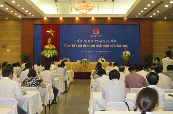 Thực hiện chỉ đạo của Phó Thủ tướng, các đại biểu tham dự Hội nghị đã trình bày những tham luận và tiến hành thảo luận xung quanh những vấn đề về vị trí của Bộ luật Dân sự trong hệ thống pháp luật Việt Nam, kết cấu của Bộ luật Dân sự và những hạn chế, bất cập trong nội dung cụ thể của Bộ luật (như: Về áp dụng tập quán, về cá nhân, pháp nhân, hộ gia đình, tổ hợp tác, đảm bảo thực hiện nghĩa vụ dân sự, hợp đồng dân sự, thừa kế...).